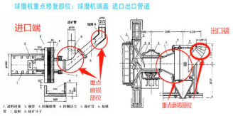 球磨機中空軸既是進礦通道同時又是球磨機端蓋。由于中空軸與進料筒存在間隙,導致礦漿進入中空軸與進料筒之間的空腔,隨著球磨機運行轉動磨損中空軸與進料筒,一旦磨穿,就會出現(xiàn)端蓋漏漿現(xiàn)象。