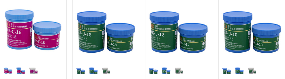 2.將xk-J-14耐高溫耐磨顆粒膠按A:B(重量)4:1比例混合攪拌均勻后,用加熱后涂覆工具將材料涂覆于出料口的部位