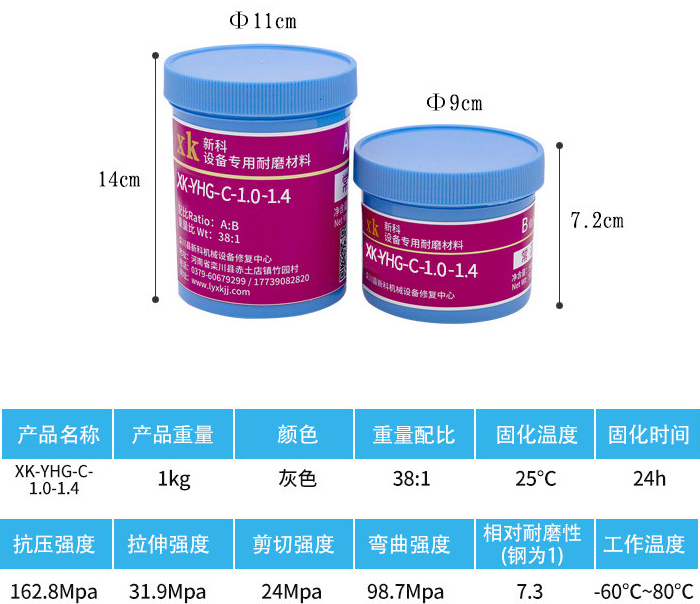 1.先預(yù)熱已噴砂的設(shè)備,再將XK-YHL-1.0高分子耐磨顆粒膠按比例混合攪拌均勻,用批刀或塑料刮板對磨損部位進(jìn)行修復(fù);